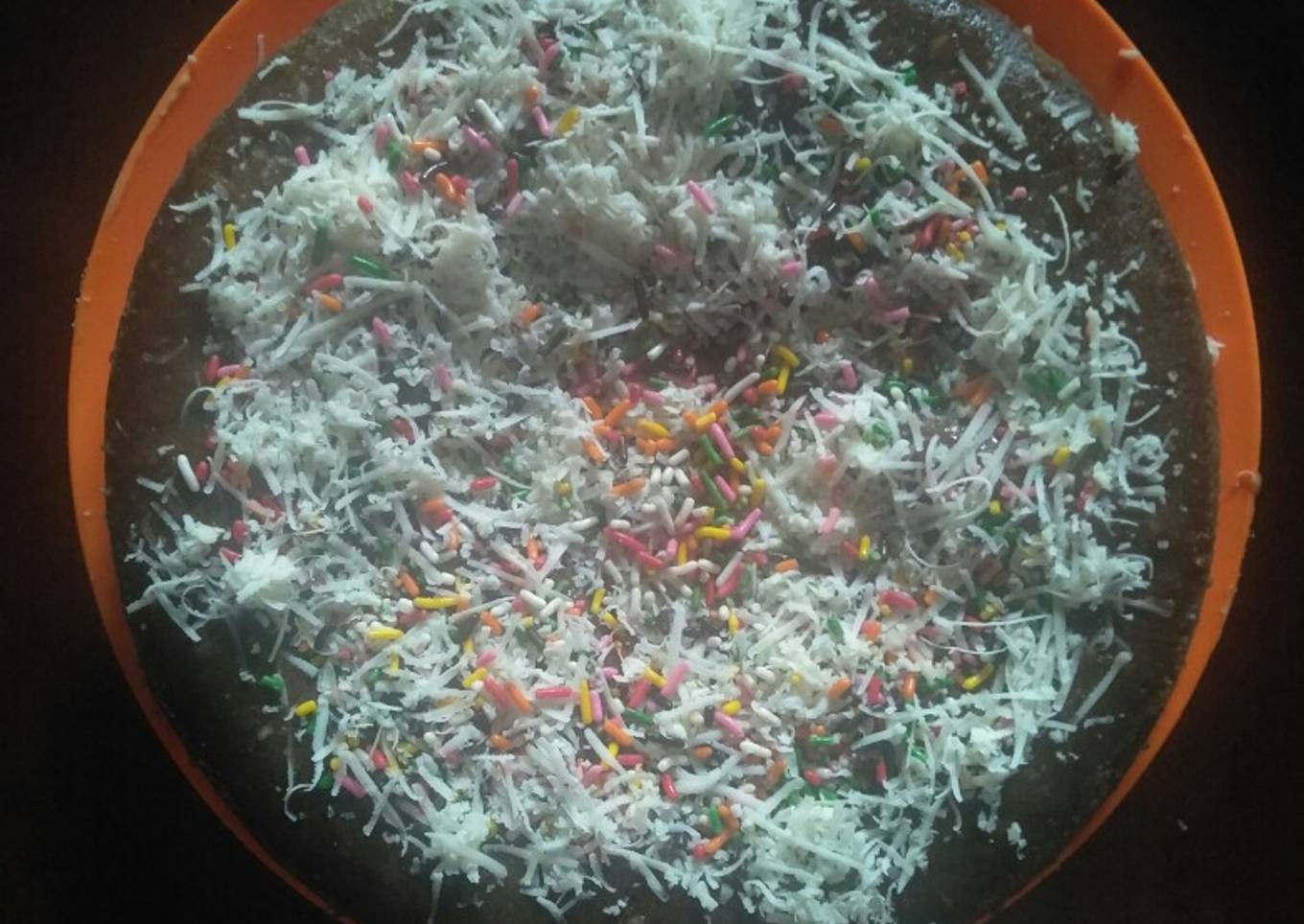 - Tuangkan kedalam loyang berukuran 20×20cm yang sudah diolesi mentega.kukus selama 45 menit.angkat angin- anginkan. Lalu beri toping dan potong sesuai selera.