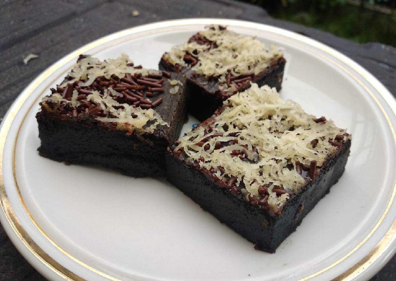 - Keluarkan brownies dari dalam loyang. Berikan parutan keju dan meises sebagai topping. Huwalaaa..brownies coklat keju siap dinikmati.