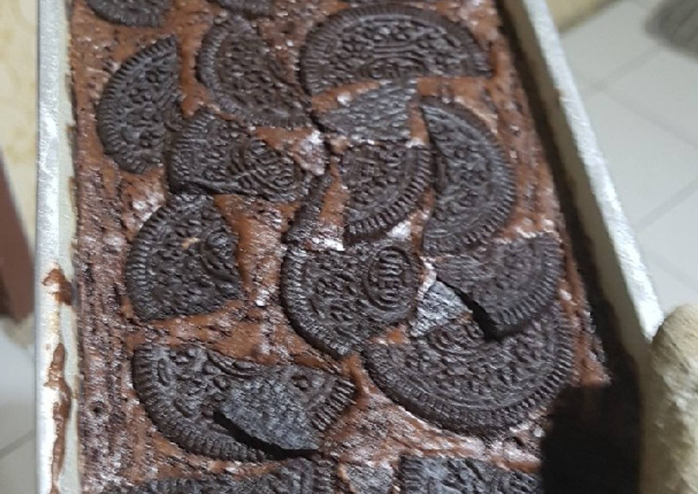 - Masukkan dalam loyang brownies yang sudah dioles margarin dan ditaburi tepung terigu. Hias dengan topping (saya pakai oreo). Panggang dalam oven dengan suhu 160°C selama 20-30 menit (ovennya sudah dipanaskan dulu sebelumnya ya, biasanya saya nyalakan sebelum mulai mengolah bahan)