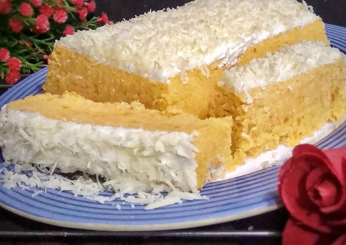 - Tuang adonan ke dalam loyang lalu kukus hingga matang (sekitar 25-45 menit).