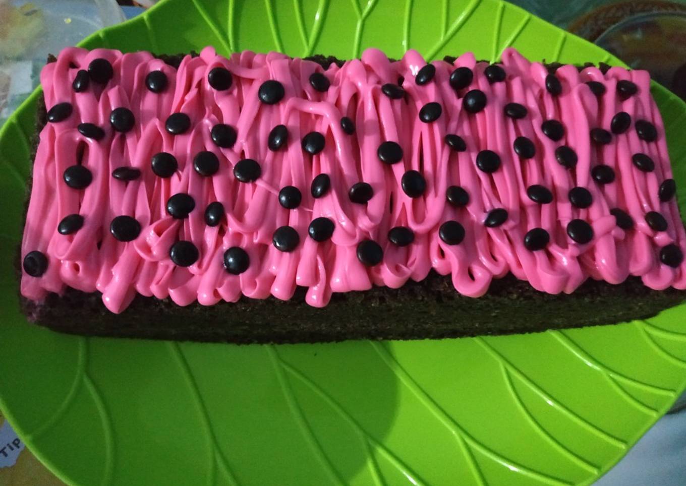 - Kalo udah dingin, olesi dengan glaze, dan taburi choco chips diatasnya