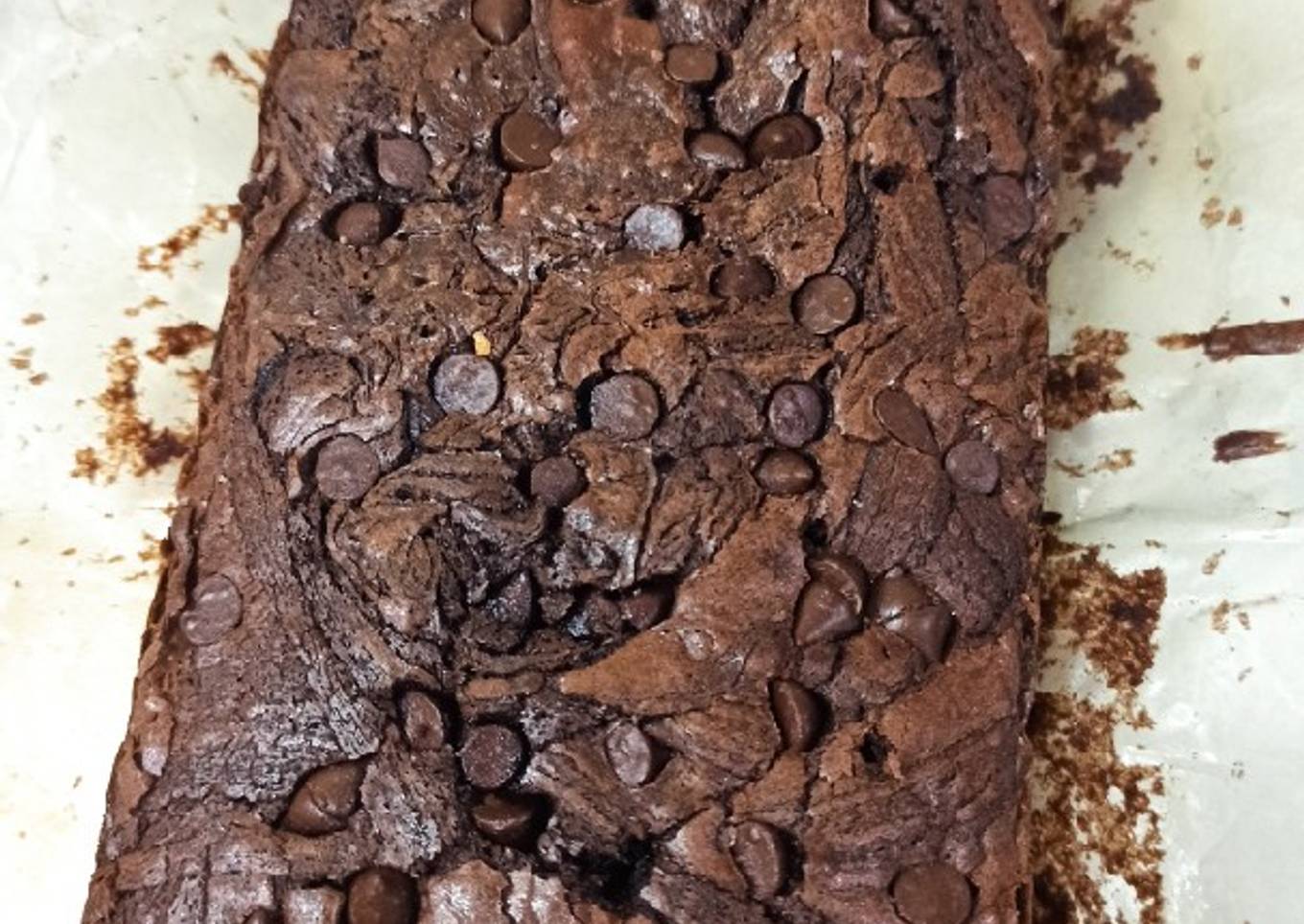 - Stlh itu terakhir masukan margarin n coklat yg telah dilelehkan..aduk hingga rata. Tuang adonan dalam loyang yg telah dialaskan baking paper dan taburkan chocochips diatasnya.