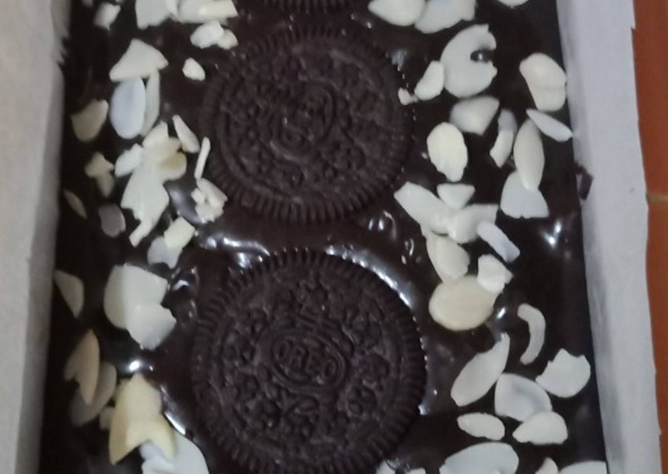 Cara untuk menyiapkan Brownis Cruncy toping Oreo dan Slice Almond